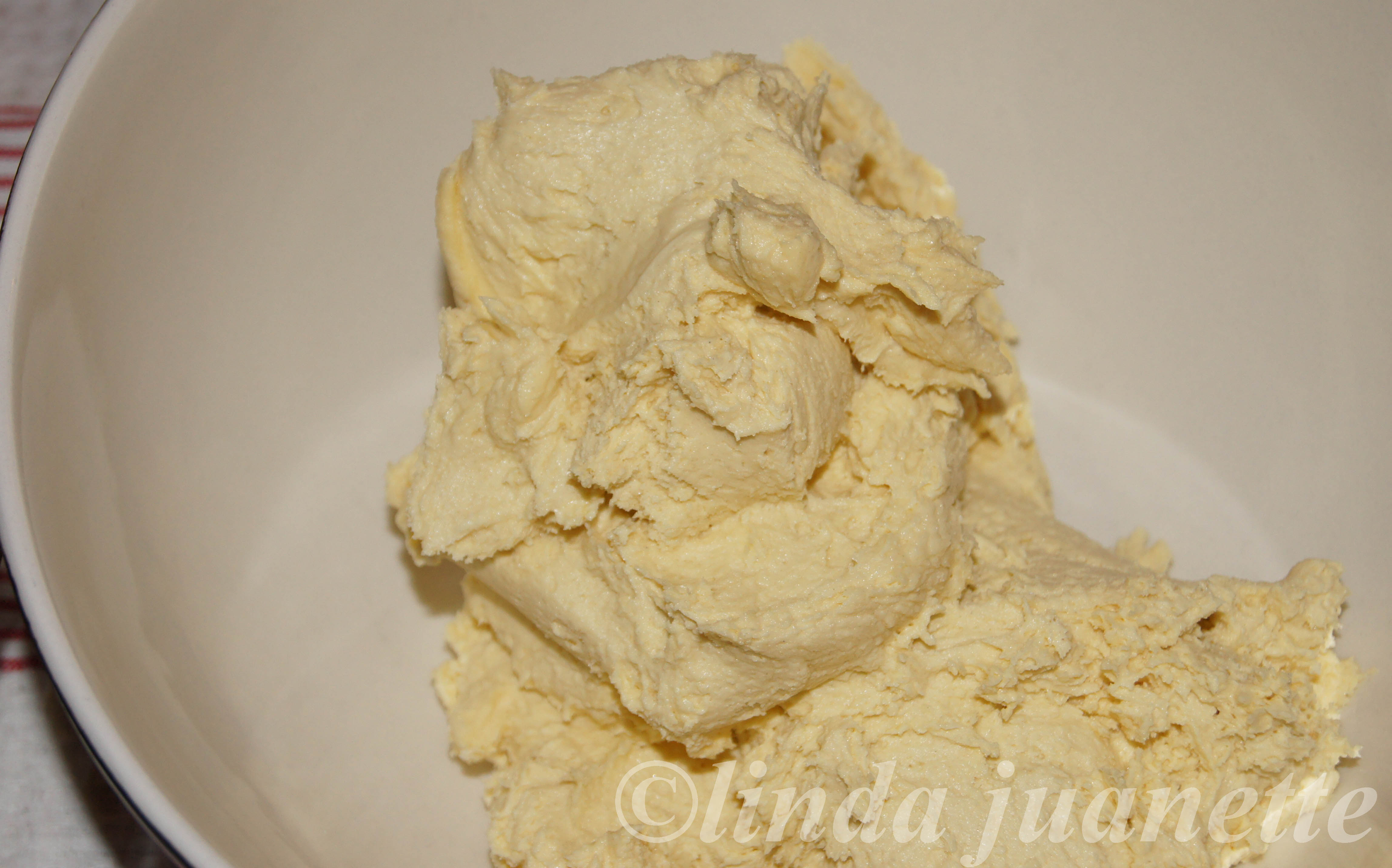Rør margarin og sukker hvitt, tilsett eggene et av gangen, og deretter de øvrige ingrediensene.