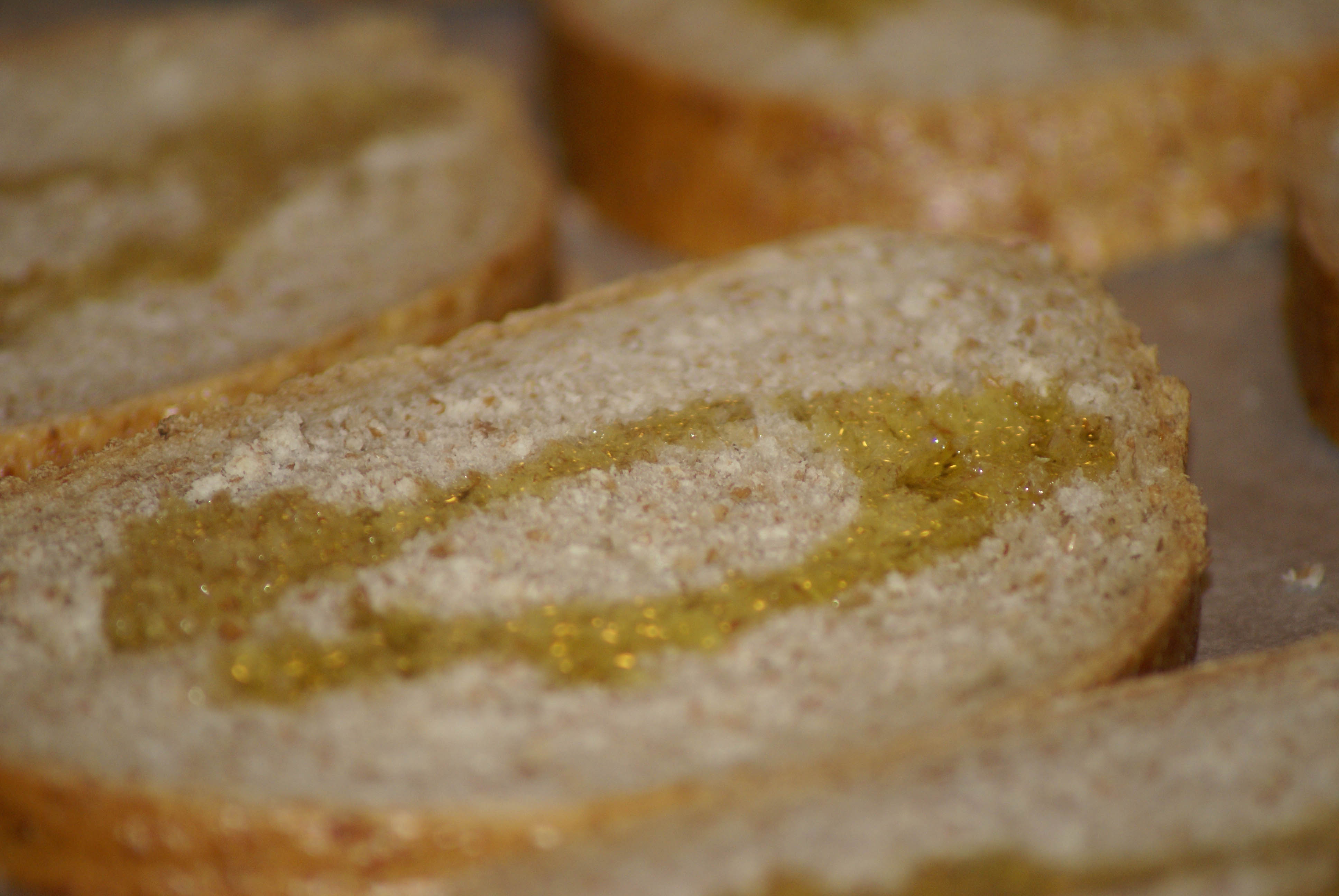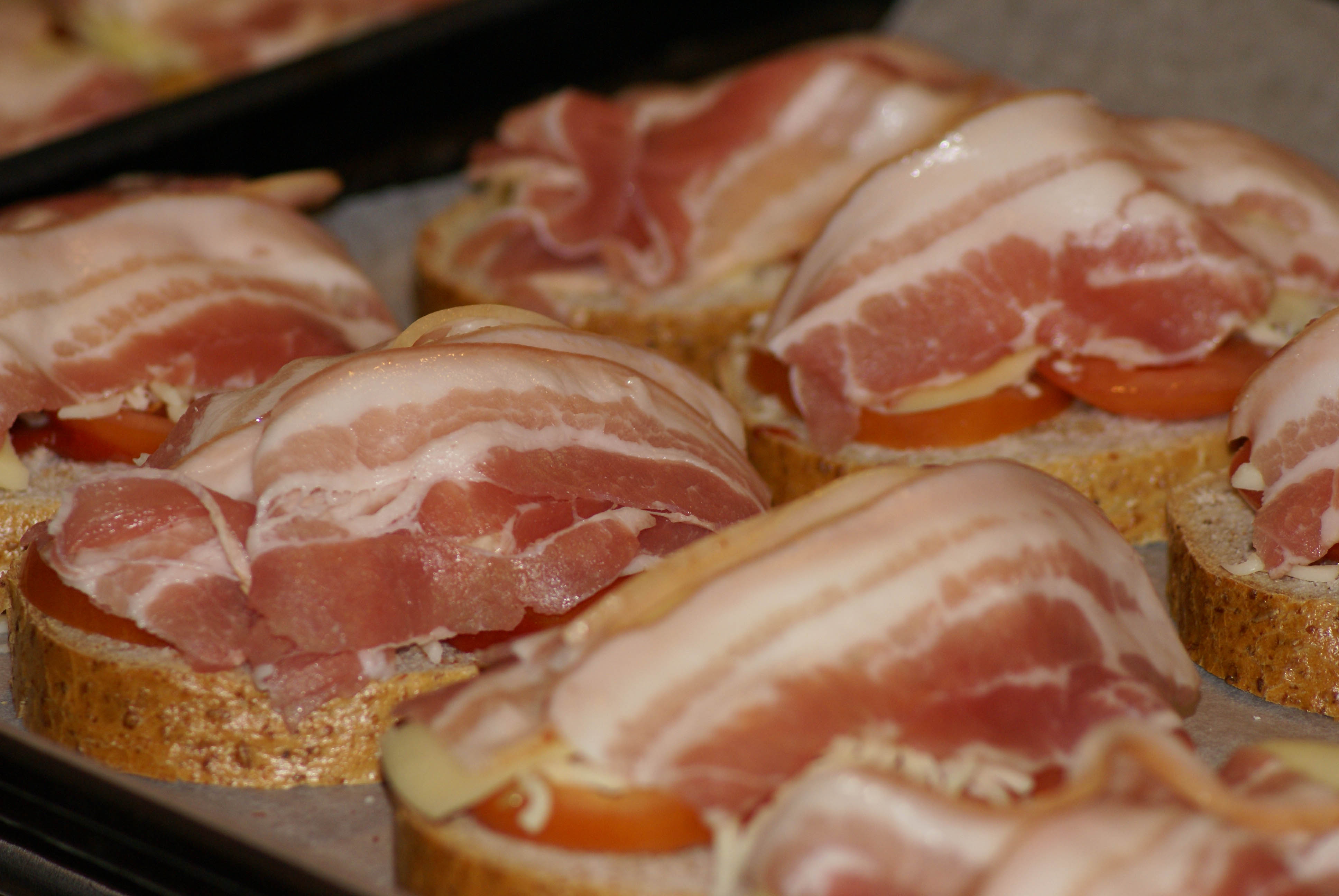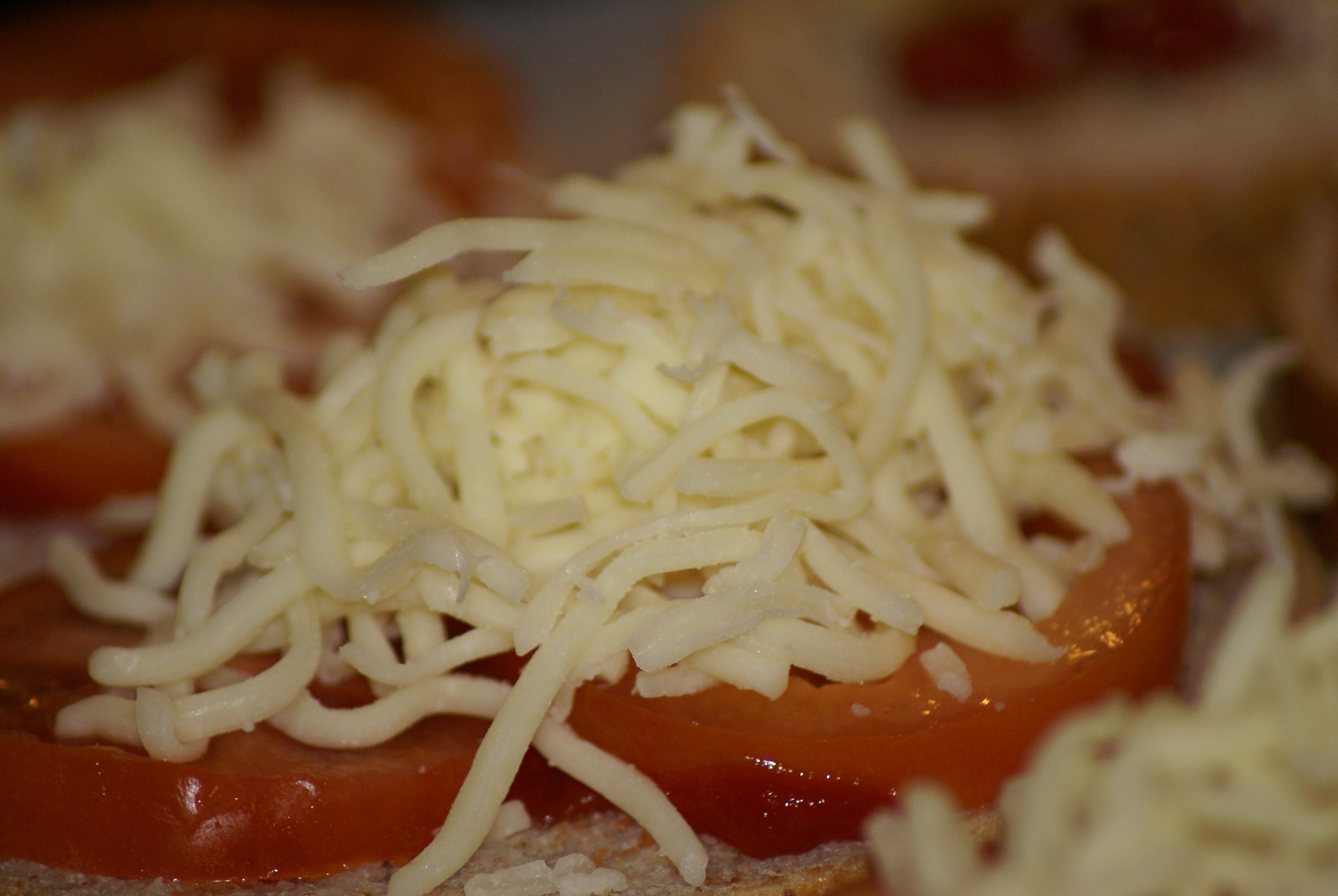 Skjær litt tykke skiver godt brød, ha olivenolje over. Smør et tynt lag tomatpurè over dersom man liker det. Legg tykke skiver tomat på skiven, og deretter et toppet lag revet ost. Mozarella, fersk eller revet er min personlige favoritt å bruke på disse smørbrødene, men man kan trygt bruke andre typer hvit ost, blant annet Norwegia og Jarlsberg.