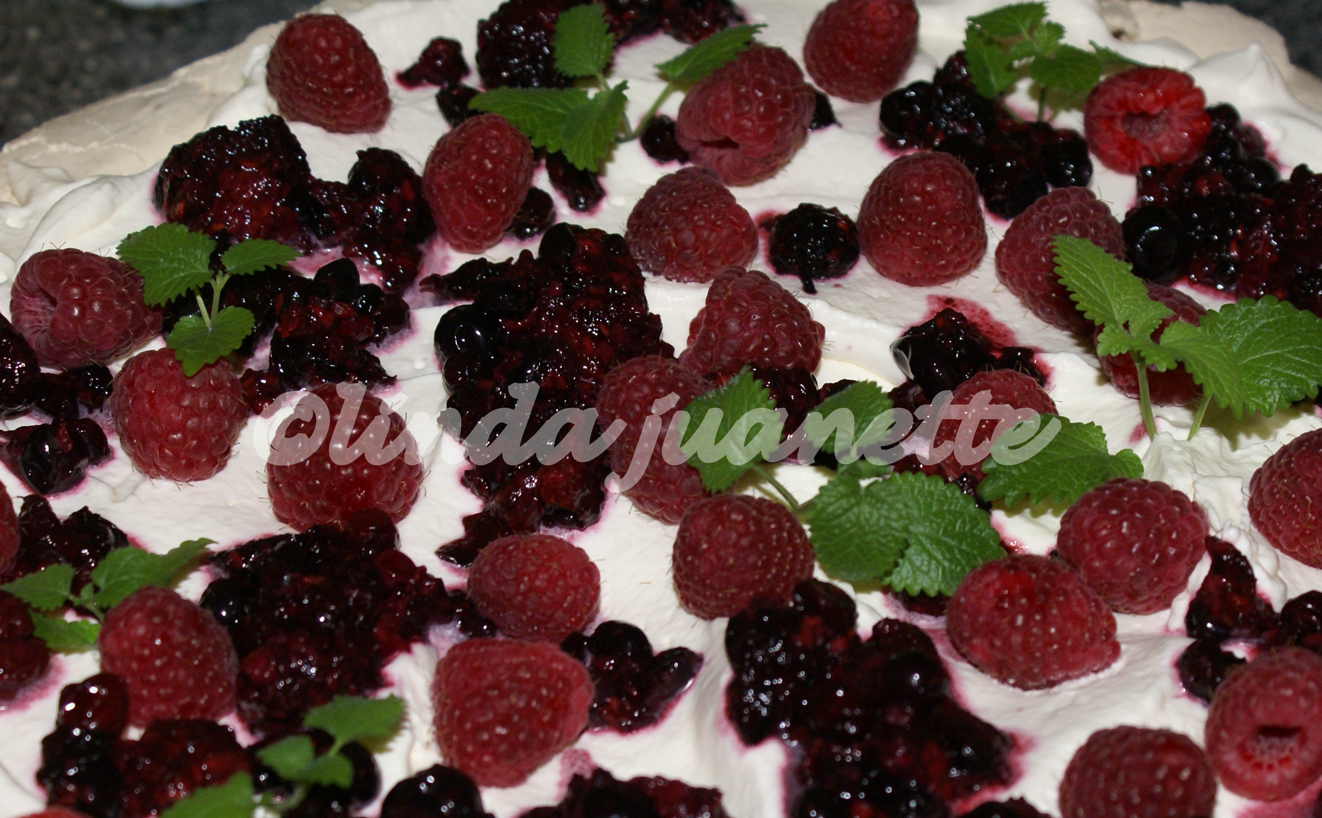 Pynt på Pavlovakaken: Pynt kaken rett før severing.