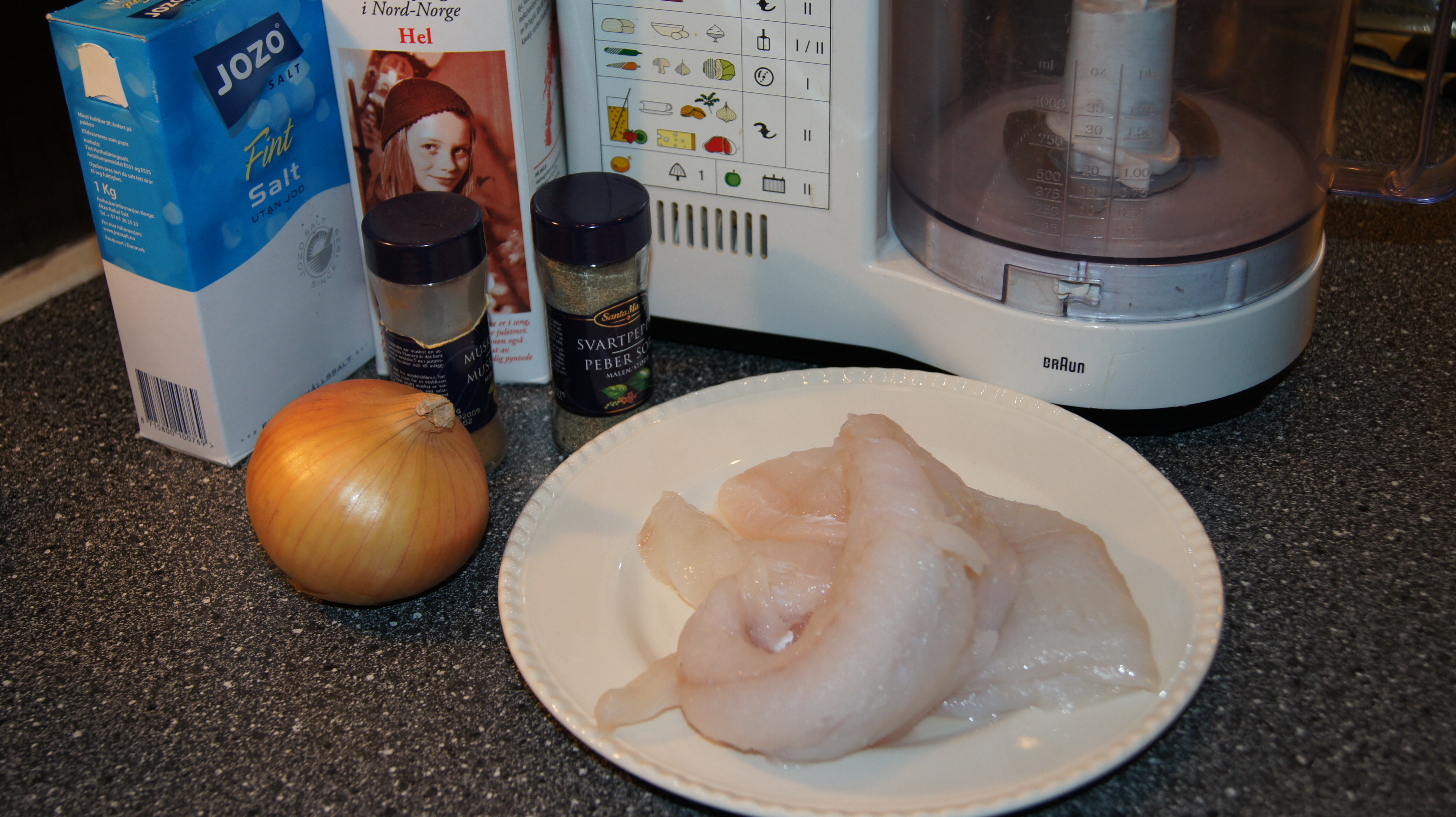 Fremgangsmåte: Skjær fiskefileten i mindre biter, og kjør den i mikser sammen med alle ingrediensene unntatt melken. Når alt er most godt kan du spe med melken til deigen er passe.