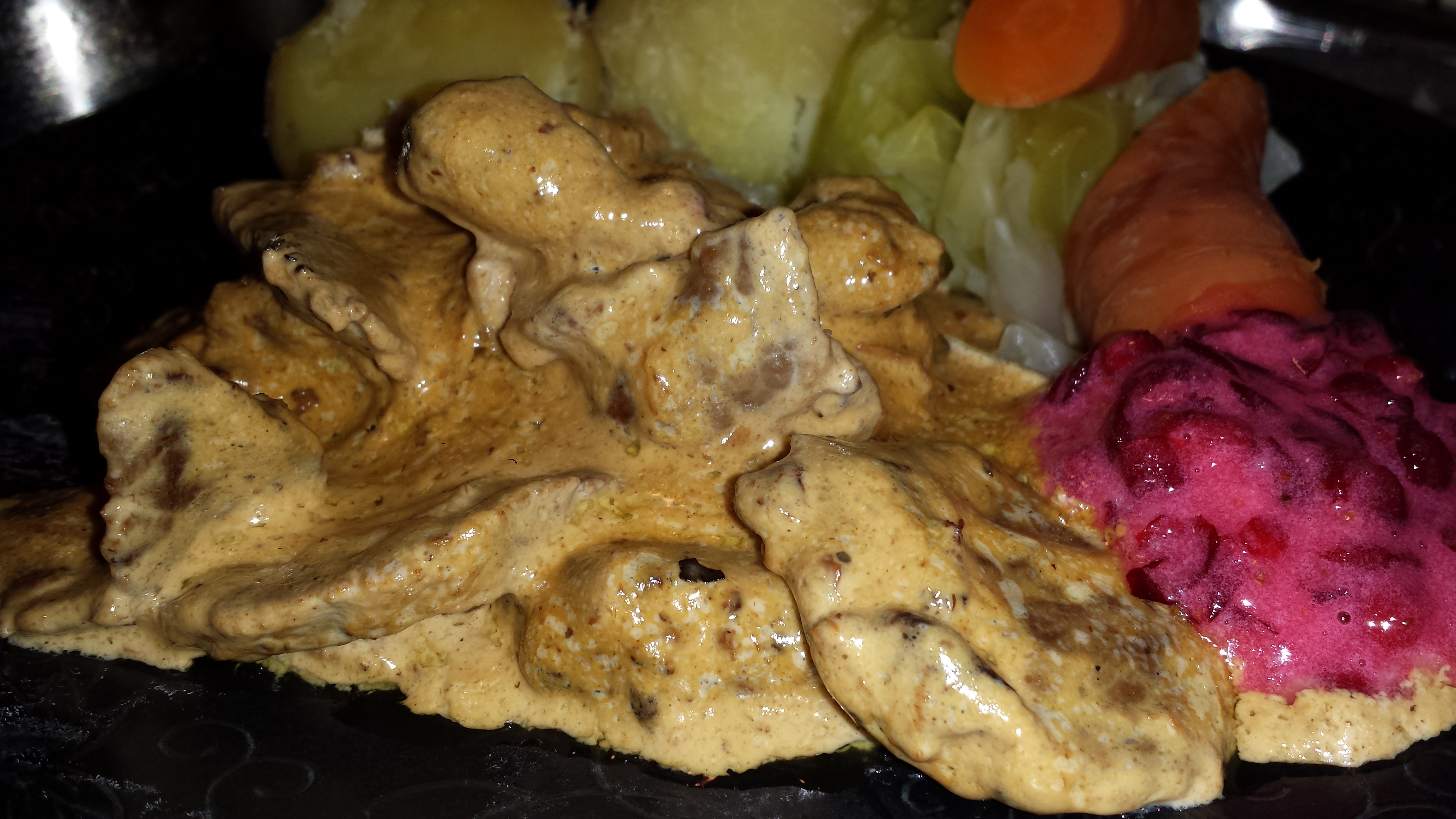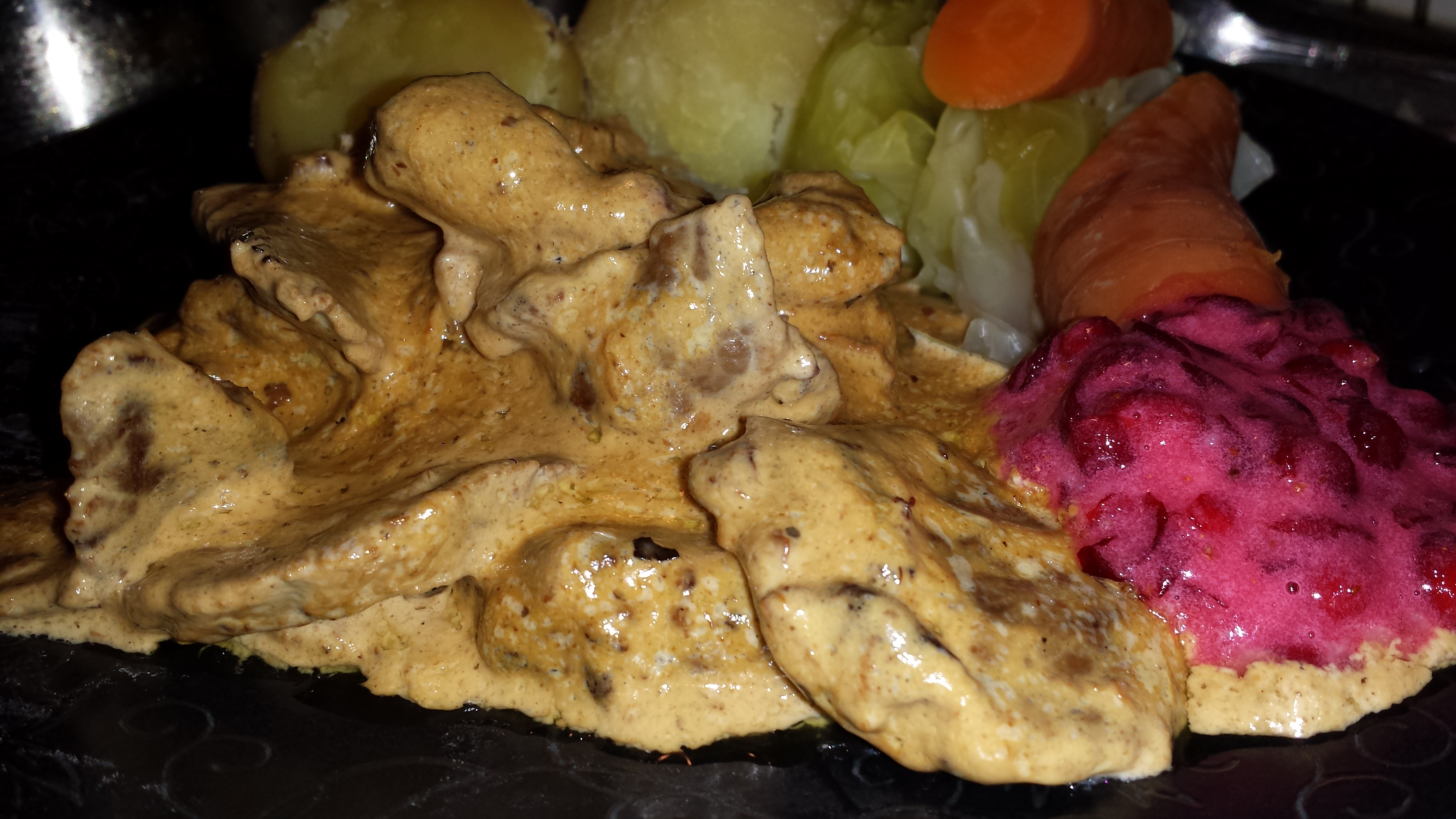 Tyttebær og kantareller er også selvhøstet og det kjennes alltid spesielt når jeg lager den første middagen med elgkjøtt og får den utrolig gode kombinasjonen av smaker fra naturen. Einebær setter en egen spiss på viltgryta og også de er selvhøstet. Det er ikke enkelt å finne einebær etter som de bruker noen år på modning, og nå har jeg brukt mine siste bær. Men, heldigvis er det kommet glass med einebær i krydderhyllene på butikkene 🙂