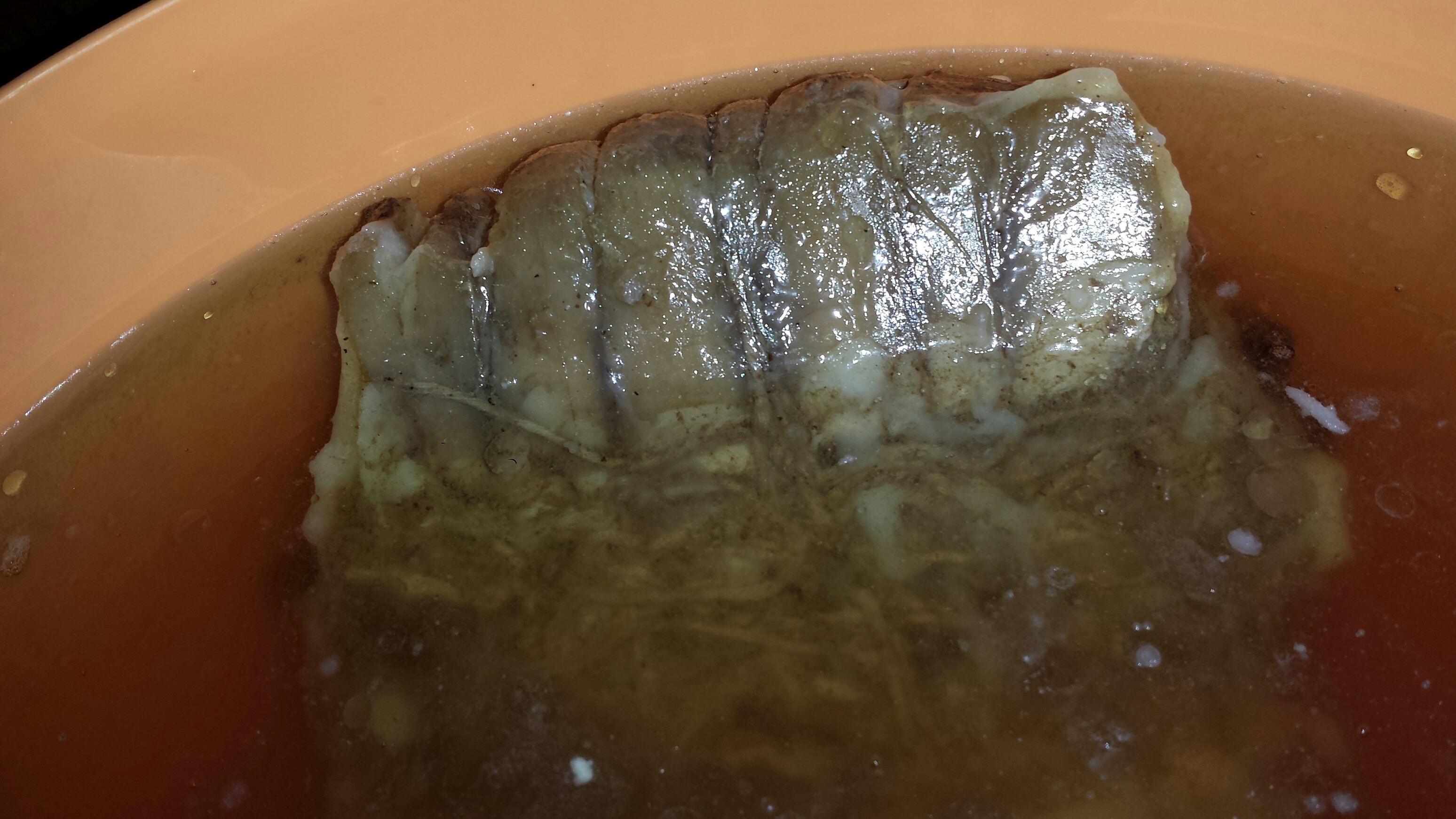 Etter at rullen er presset skal den ligge i saltlake i 5 dager før den er ferdig og klar for å spises.