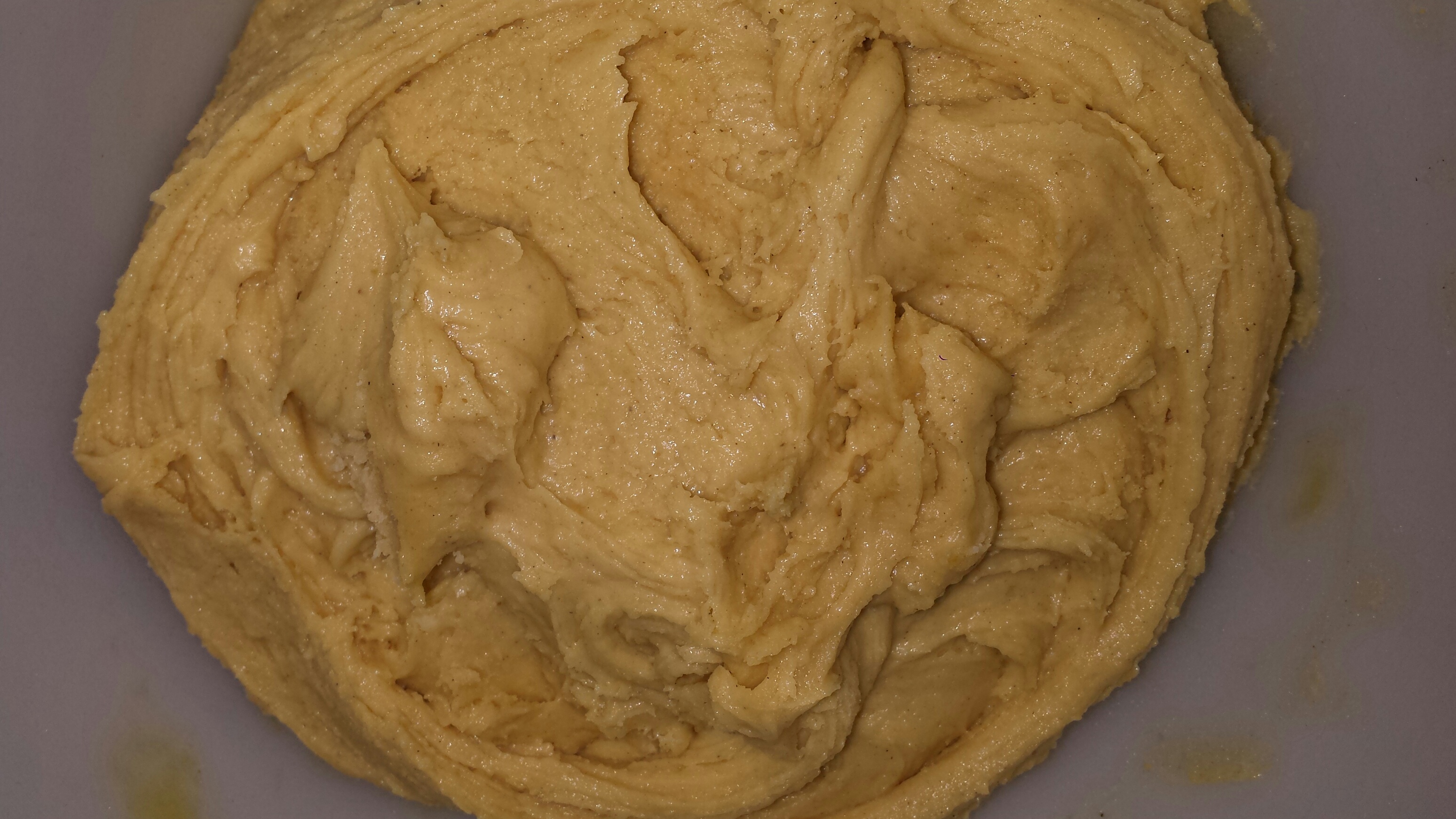 Pisk egg og sukker til eggedosis og tilsett fløten og det smelta smøret vekselvis med melet og kardemomme og hornsalt. Rør deigen sammen og dekk den til med lokk eller plast før den settes kjølig en times tid.