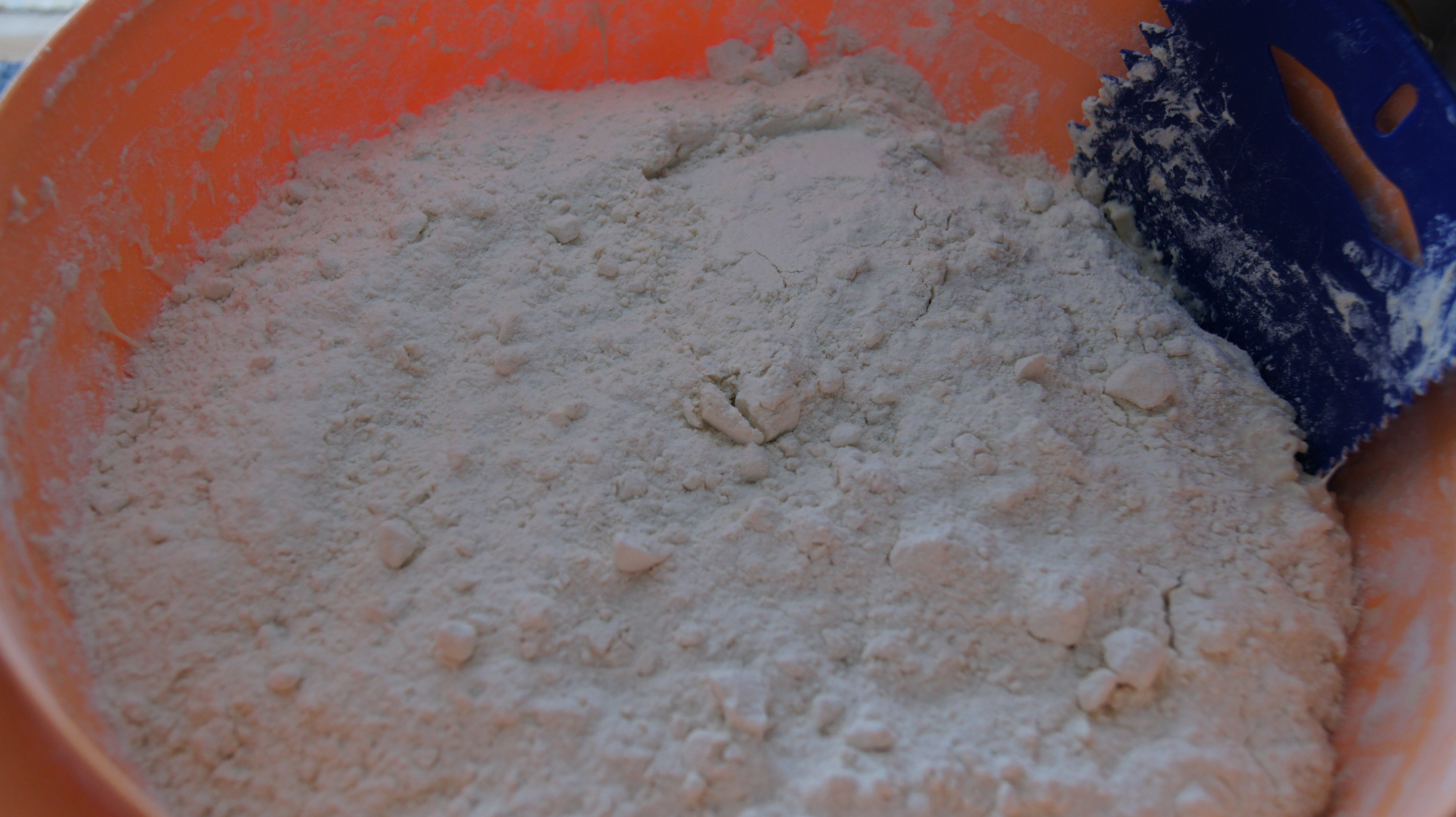 Smuldre margarin i melet og tilsett de tørre ingrediensene. Rør ut gjæren i lunkent vann, 37 grader. Lag en grop i midten av melblandingen og ha væsken i. Rør deigen godt sammen, ha plast eller bakeklede over og sett den til heving på et lunt sted ca. 1 time, eller til deigen har fått dobbel størrelse.