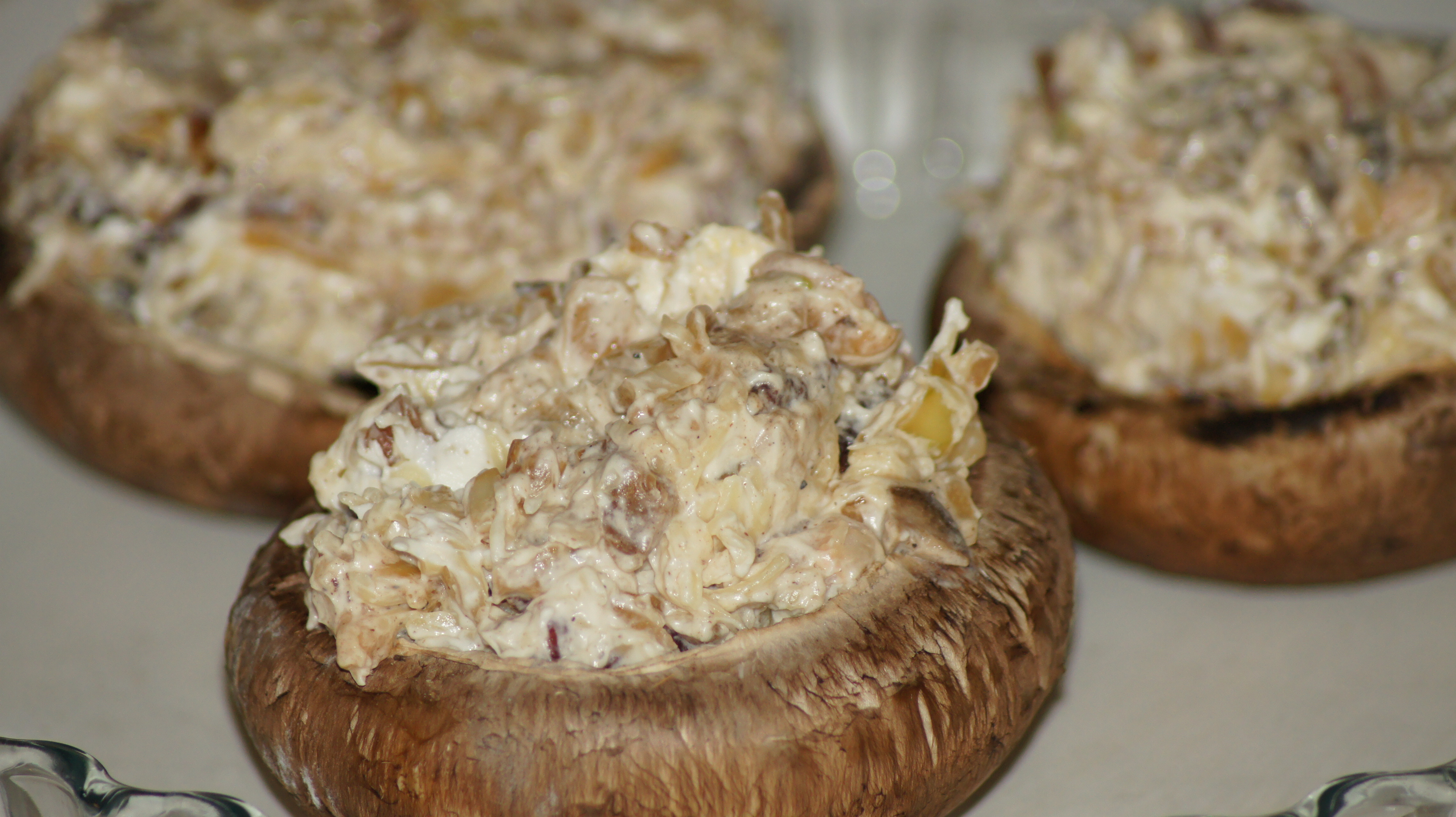 Bruk en skje og fyll Portabellasoppen med blandingen.