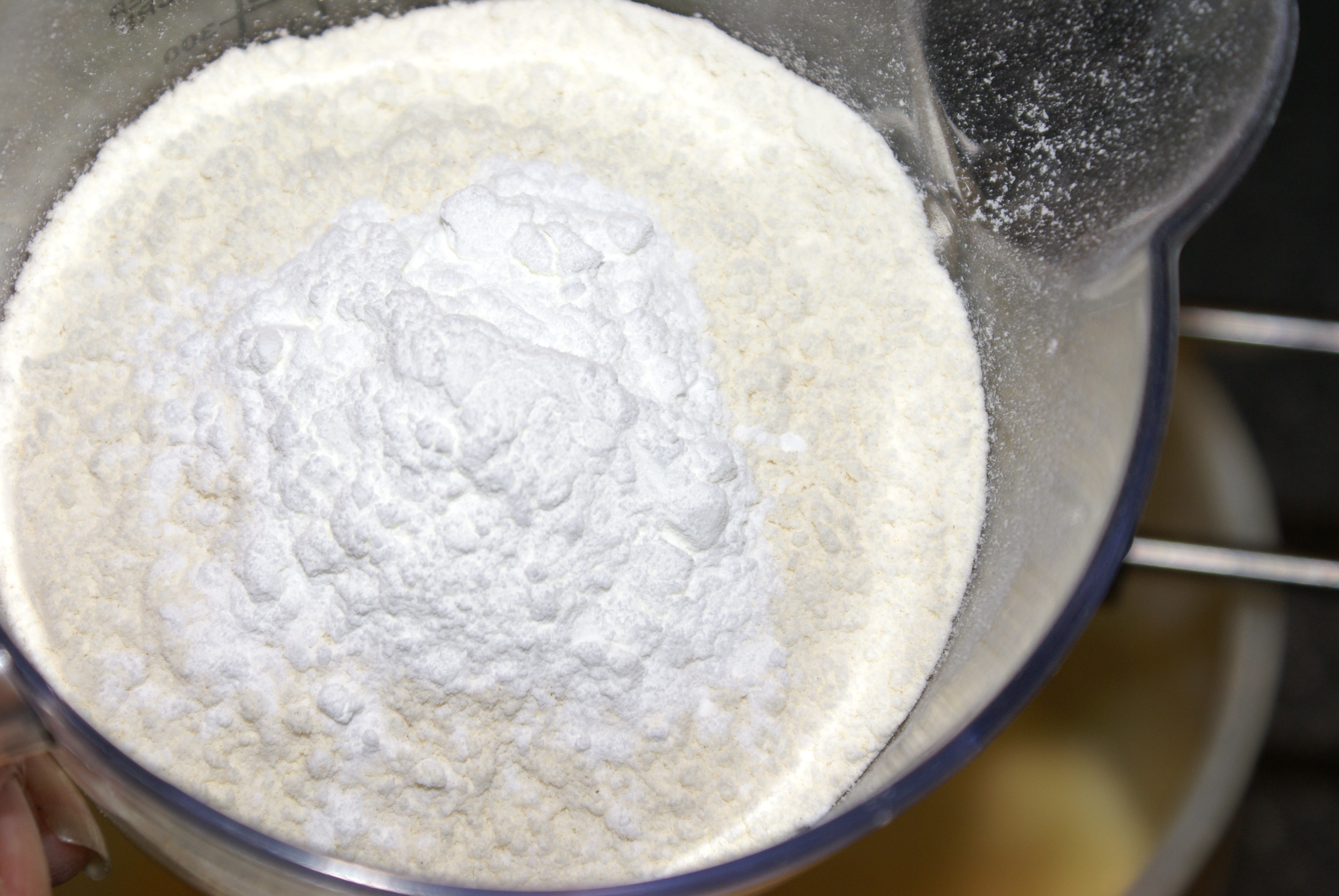 Fremgangsmåte: Pisk egg og sukker til luftig eggedosis. Tilsett siktet hvetemel og bakepulver.