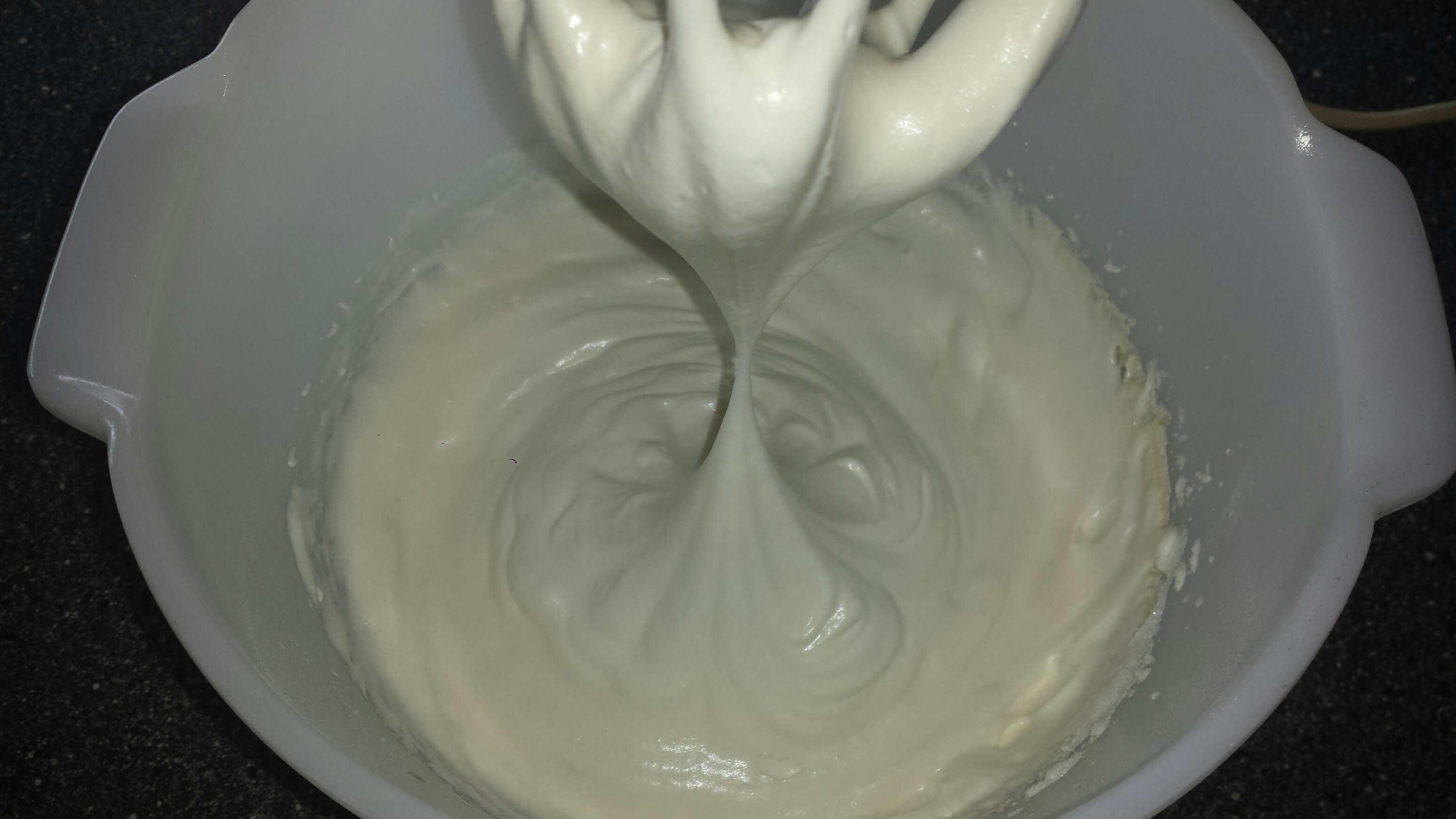 Fremgangsmåte: Pisk eggehvitene stiv. Bland inn vaniljesauspulveret med sukkeret og pisk inn i marengsen, litt om gangen.