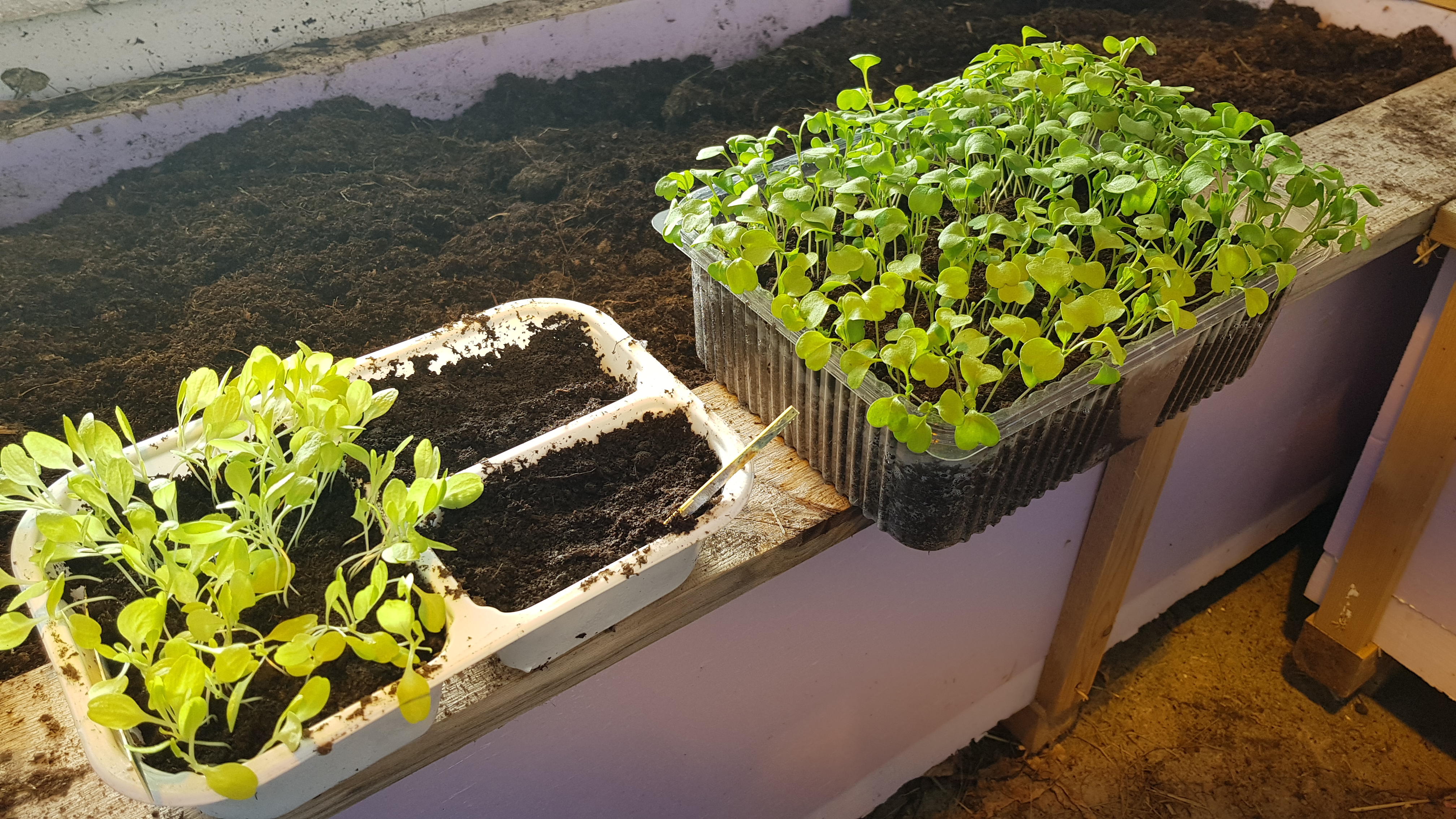 Det spirer og gror i kjøkkenvinduet og ute i det lille drivhuset.