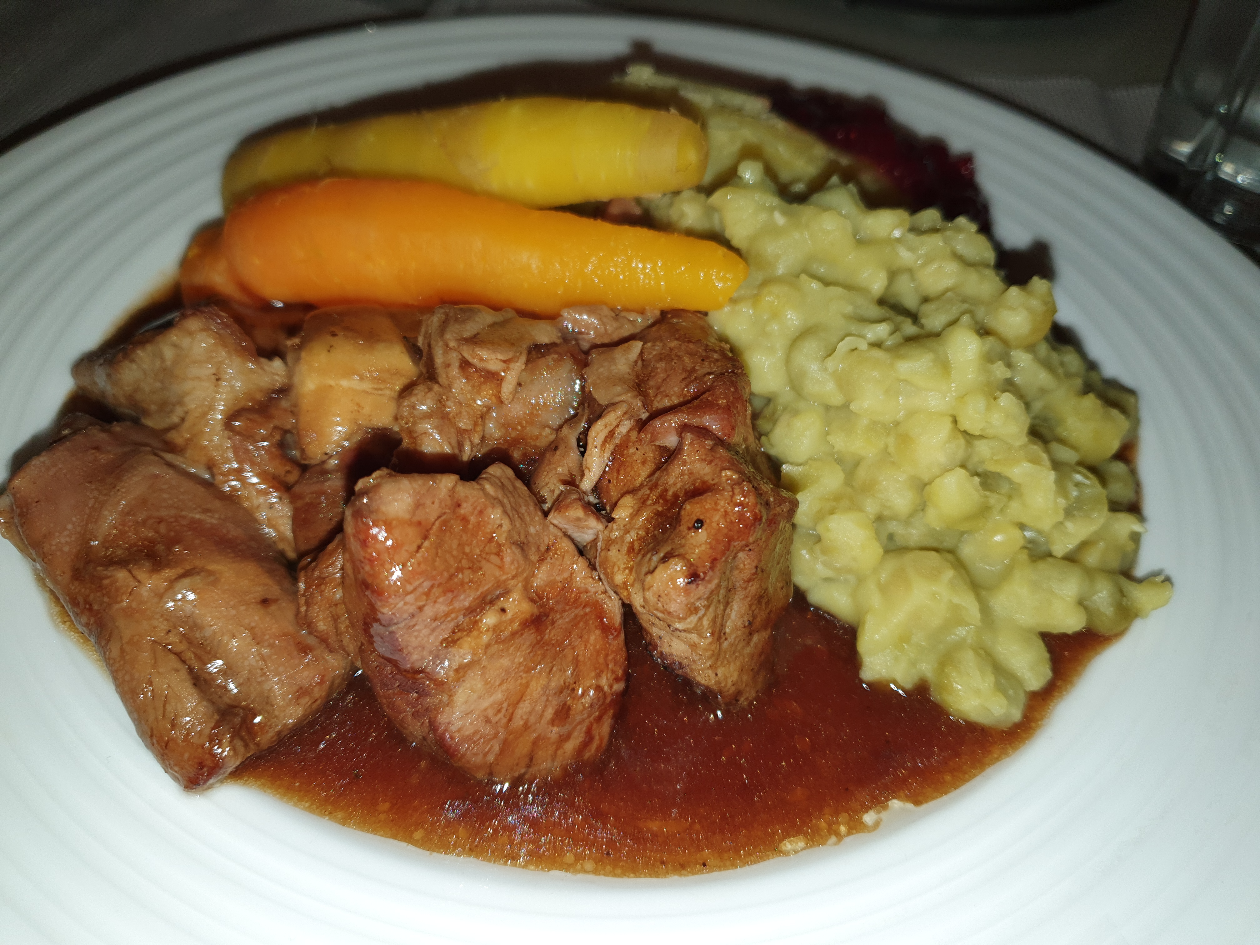 Rør hvetemelet ut i fettet som er igjen i steikepanna, og tilsett litt vann så panna blir kokt ut. Slå alt over i kjelen med kjøtt. Tilsett mer vann slik at det står akkurat over kjøttet. Rens og del løken i fire, og la bitene få småkoke sammen med kjøttet i en til to timer, alt etter hvor stor kjøttstykkene er. Er det bein på kjøttstykkene er maten klar når kjøttet begynner å løsne fra beinet.