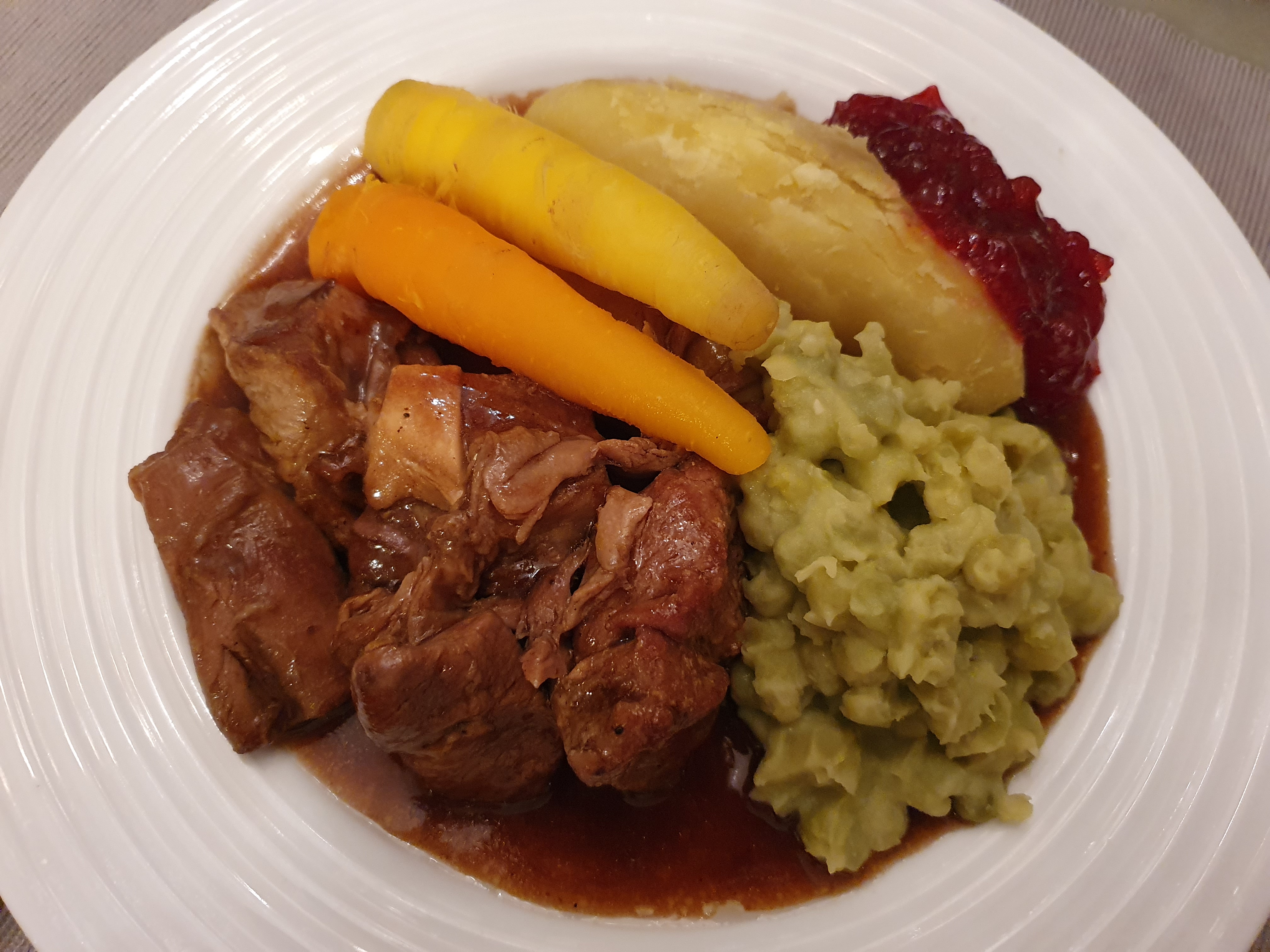 Når gryta med lammesmåsteik står på komfyren og småputrer lukter det bare så deilig! Server lammesmåsteik med kokte poteter, grønnsaker og gjerne litt tyttebærsyltetøy.