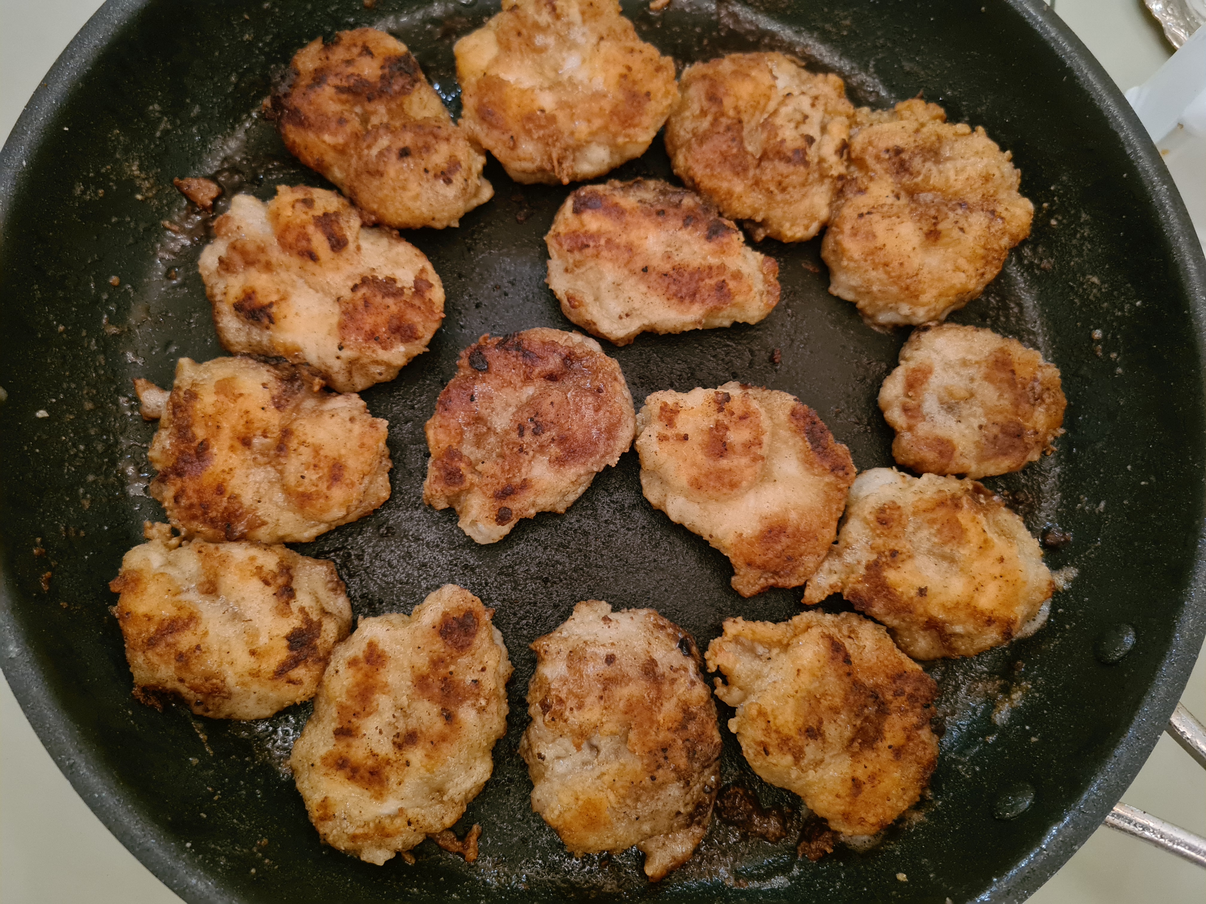 Fres margarin i stekepanna og legg torsketungene i når fettet begynner å bli brunt. Steik tungene på begge sider til de har fått passe farge og litt steikeskorpe, som regel har steikefettet nå blitt borte, men helst ikke tilsett mer, torsketungene blir mer crispy om de tørrsteiker den siste tiden. Men pass på slik at de ikke blir svidd.
