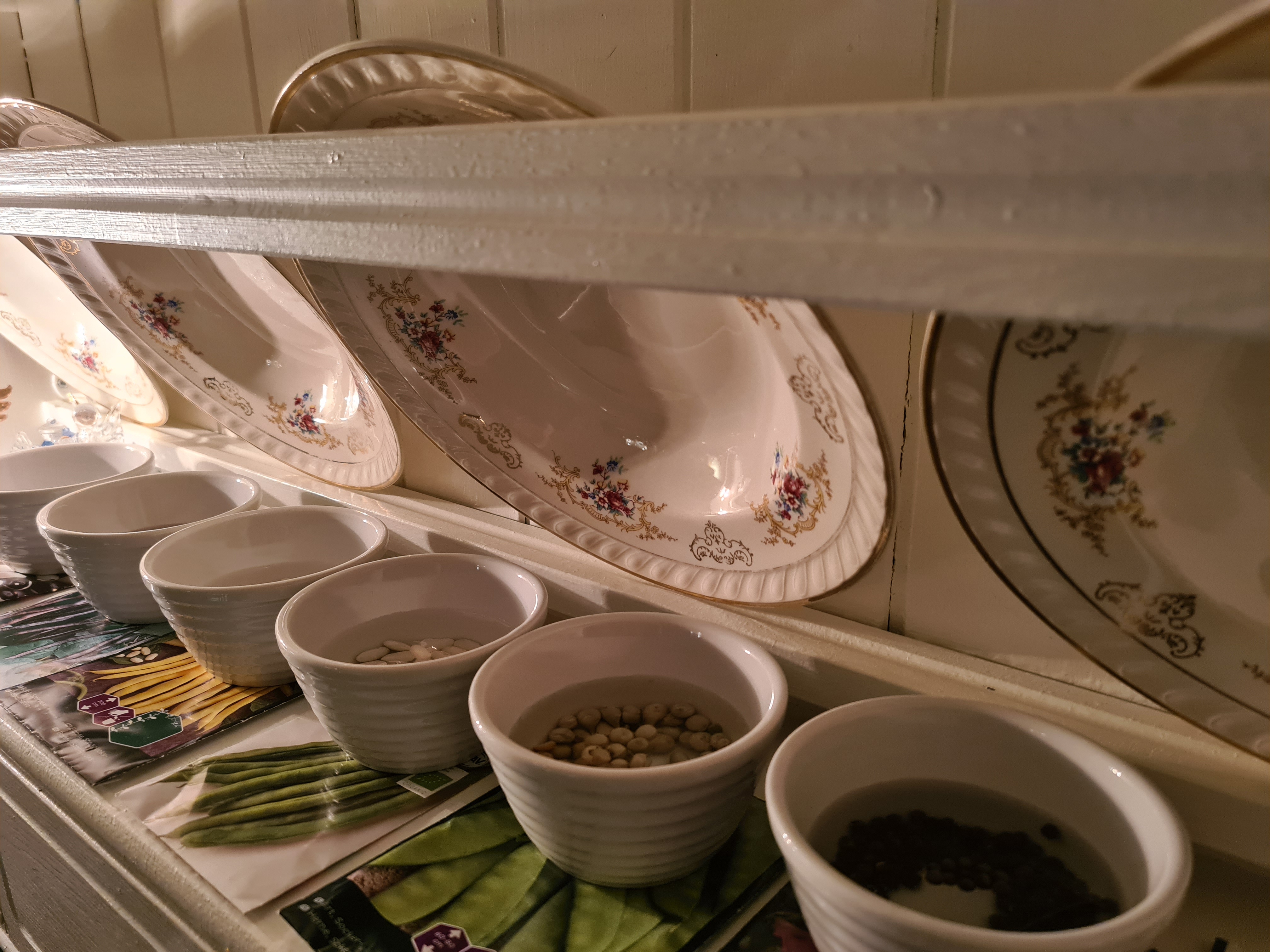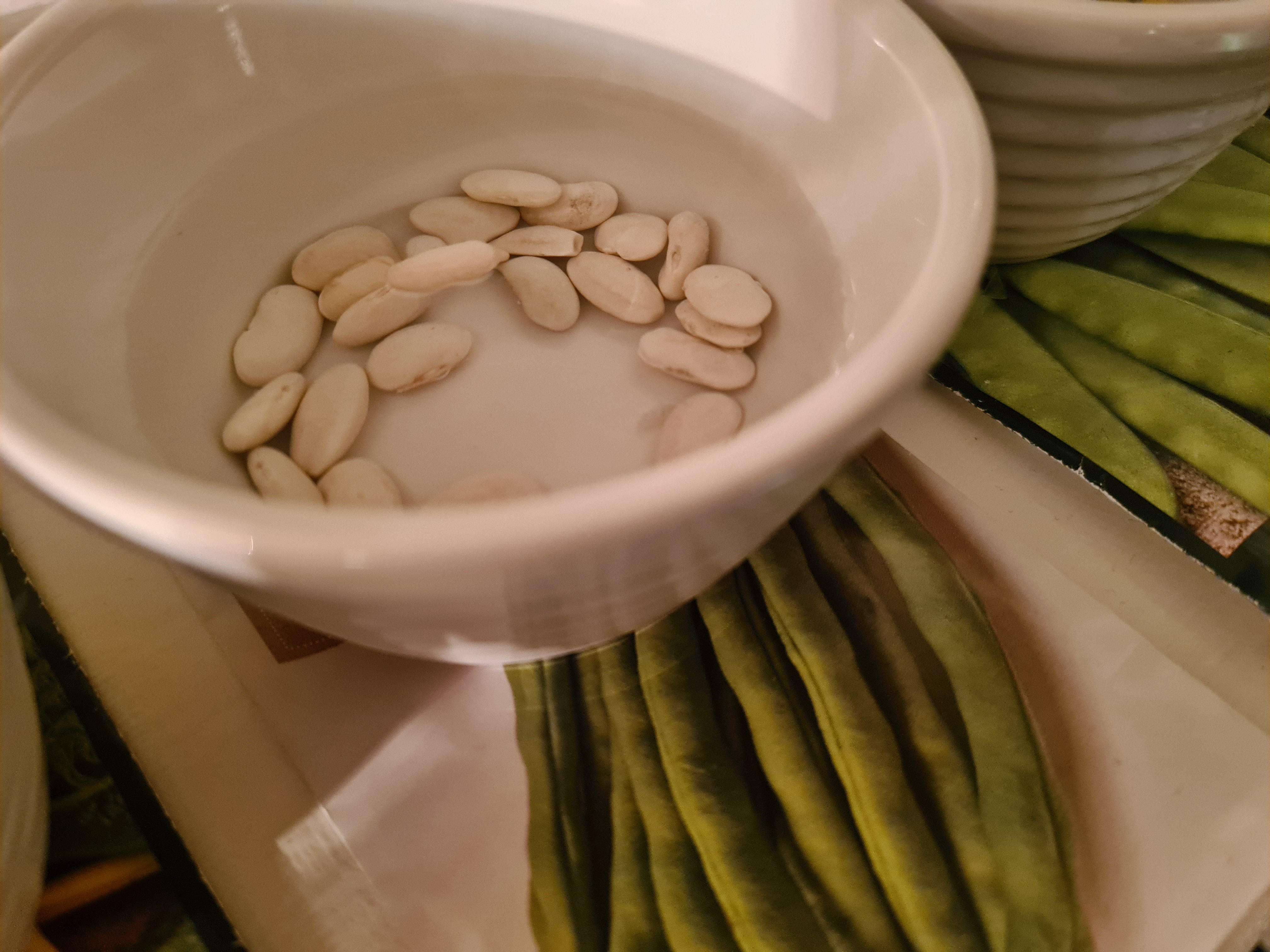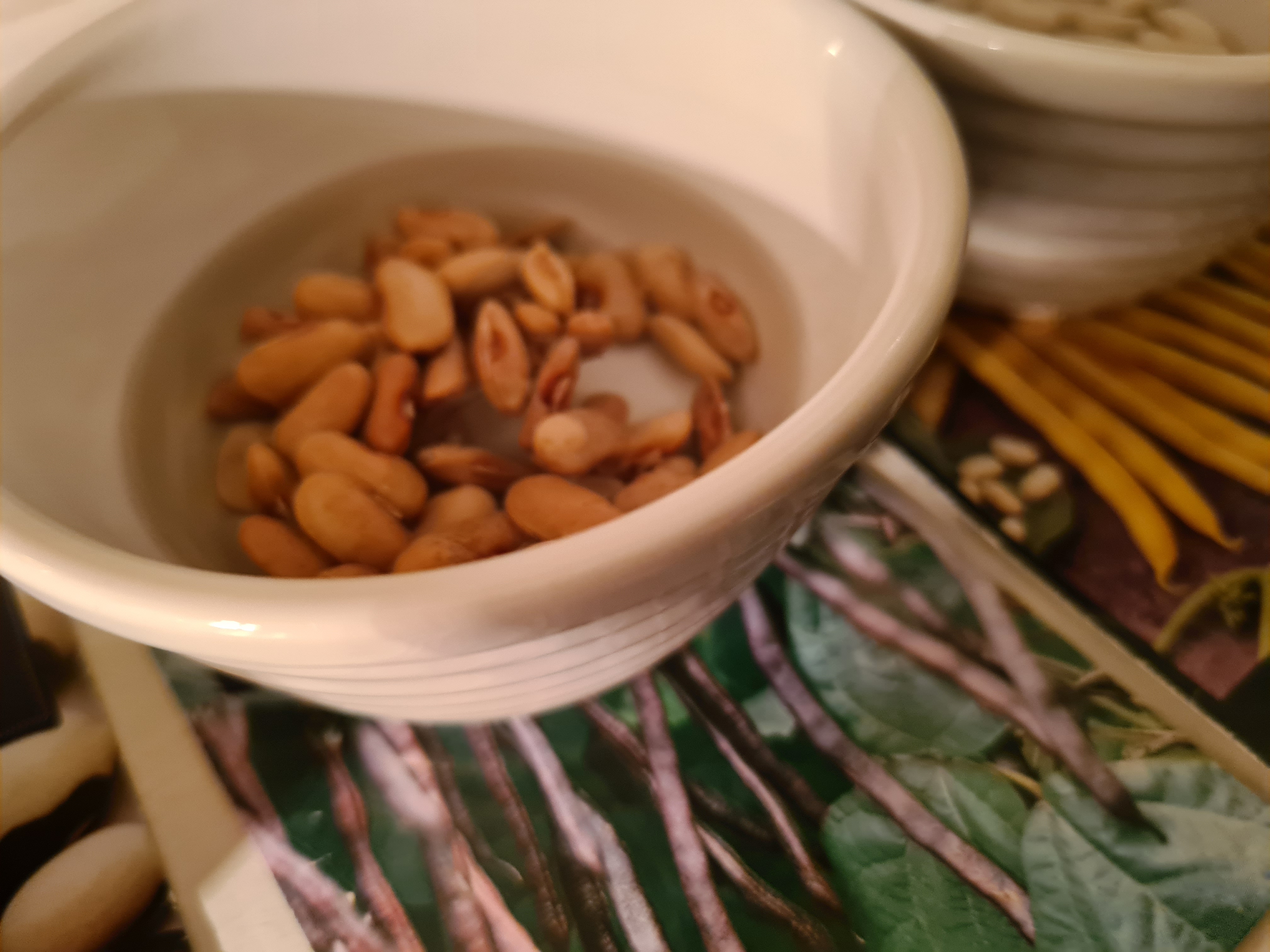 Nå er jeg i gang med forberedelse til årets sådd av sukkererter, bønner og blomstererter. For at de skal spire lettere legger jeg de i en skål med vann over natta, og deretter er det bare å så de.